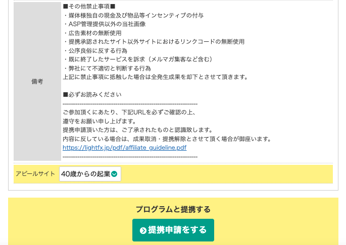 まず、下記の一番下にある「提携申請をする」をクリックしましょう。