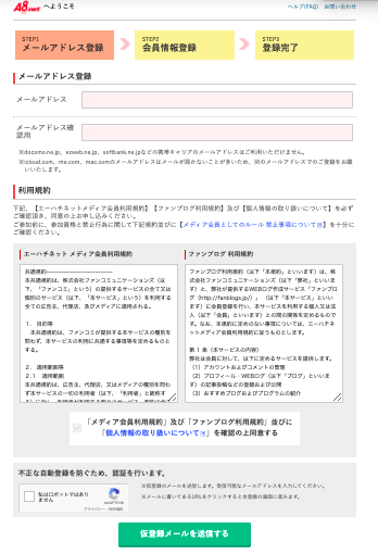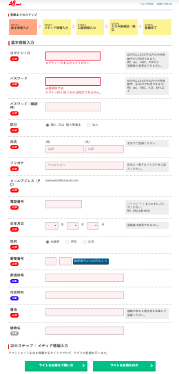 更に下にスクロールすると、会員情報を入力する箇所があります。