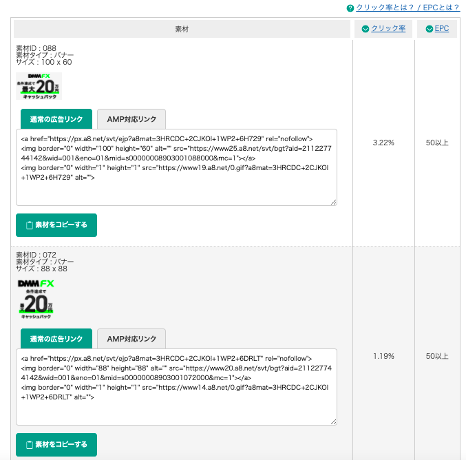 「A8.net」で稼ぎたい商品の広告リンクをコピーする