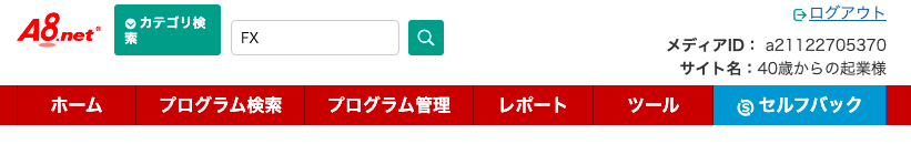 A8.netで提携申請した広告商品の審査結果を確認します。
