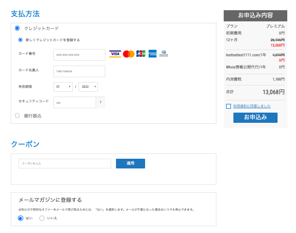 「今すぐお申し込み」をクリックすると、以下の画面になります。