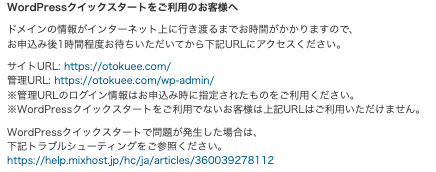 mixhost申込時に登録したメールアドレス宛に、mixhostからメールが届いているはずです。